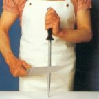 Pisau untuk memotong daging di industri rumah potong hewan dan pengolahan daging, membutuhkan ketajaman terus menerus, sehingga pemotongan bisa dilakukan secara benar, baik , dan rapi. Berikut ini merupakan cara untuk mengasah pisau menggunakan alat sharpening steel yang benar :